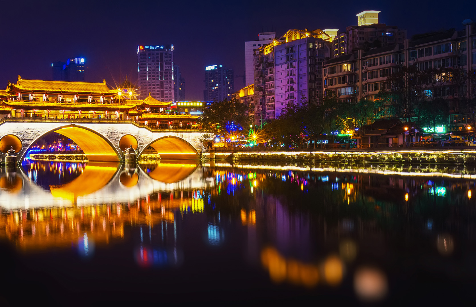 清晨探访大熊猫繁育研究基地,看国宝憨态可掬爬行、啃竹、打滚,幼崽熊猫萌化人心。午后1小时车程至广汉三星堆博物馆,青铜神树通天、纵目面具神秘、黄金面具璀璨,解密4500年古蜀王国密码。夜晚乘船夜游锦江,两岸"十二月市"光影璀璨,合江亭、兰桂坊酒吧街流光溢彩,夜宿成都。